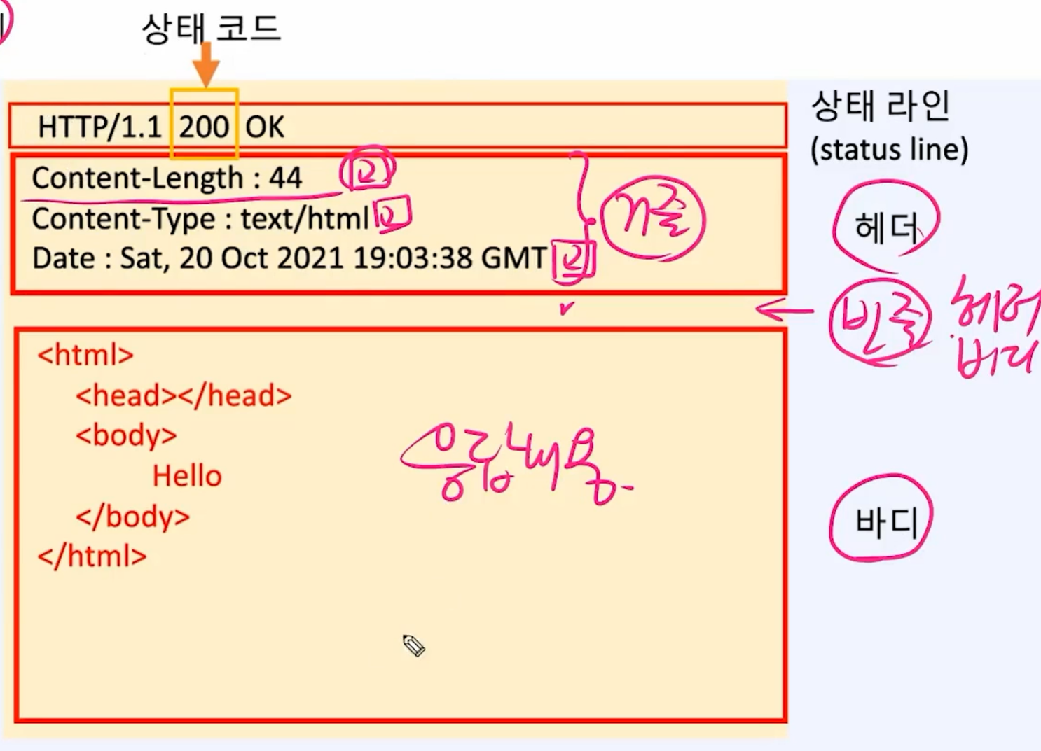 - 위의 그림은 HTTP 응답 메시지 형식이다.