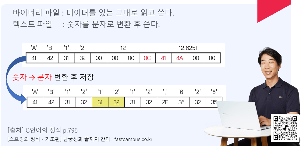바이너리 파일 : 데이터를 있는 그대로 읽고 쓴다.