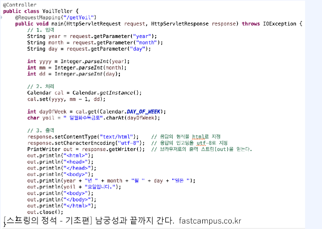 즉 매핑된 URL이름인 getYoilMVC.jsp가 응답된다.