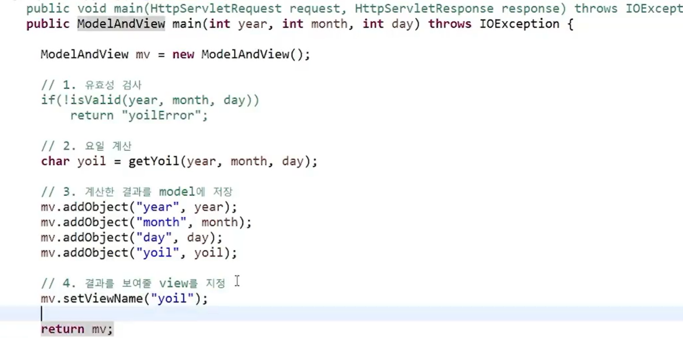 처리하는 부분에서는 Model객체에 결과에 필요한 값들을 다 저장한다.