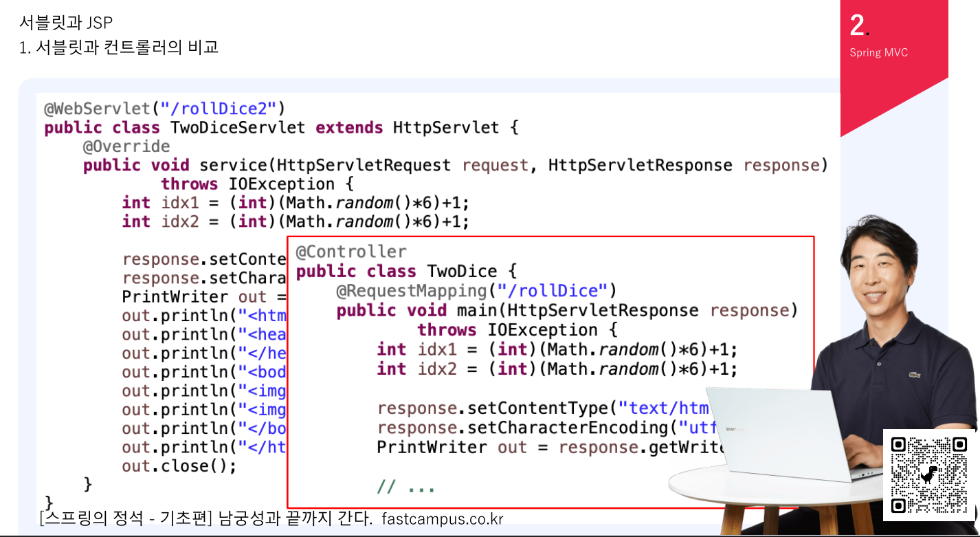1. 서블릿과 컨트롤러(스프링)의 비교