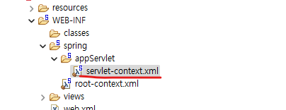 참고로 servlet-context.xml 은 스프링과 관련되 web설정을 하는 xml 파일이다.