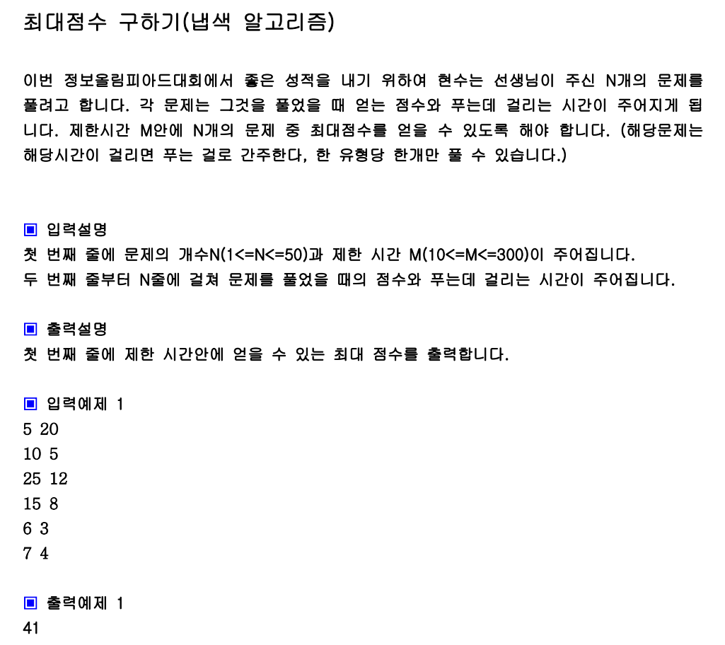 * 최대점수 구하기(냅색 알고리즘)
