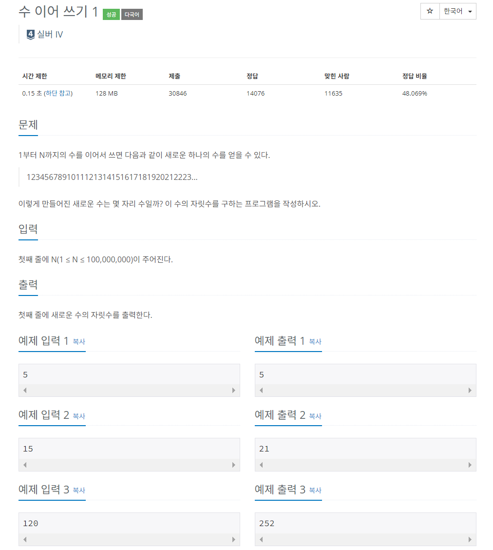 int cnt = 1; // 자릿수 카운트(1자리, 2자리, 3자리)